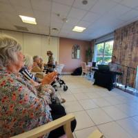 Publiée le 17/10/2022Dregan, notre intervenant, a donné une belle énergie lors de son intervention. Les résidents ont pu de nouveau danser le rock et également chanter à tue-tête! Lire la suite